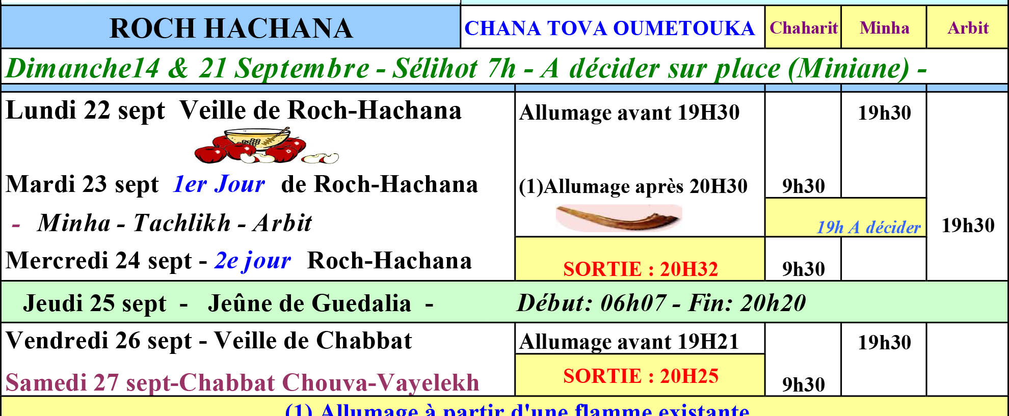 Le nouvel an commence cette année le lundi 22 septembre . Office au Centre Aviv à 19h30.