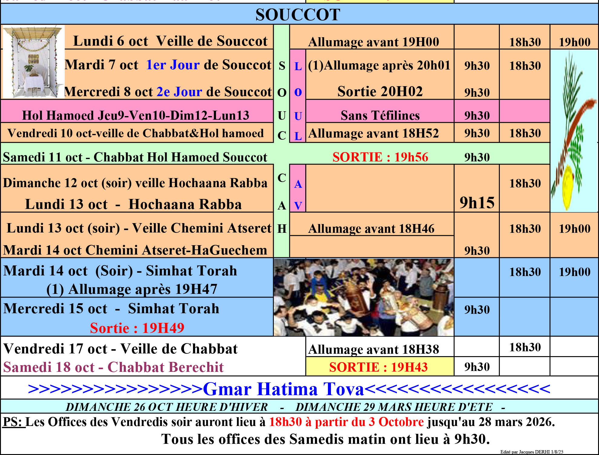La fête de Souccot commence le lundi 6 octobre au soir et se terminera par Sim’hat Torah le mardi 14 et le mercredi 15 octobre